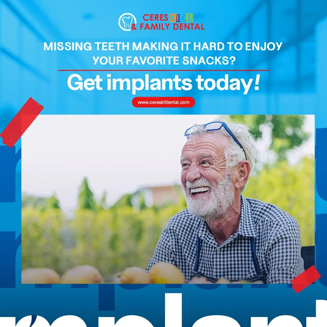 Meet with a top-rated 4.9β implant dentist at Ceres Kids and Family Dental to see if dental implants or All-on-4 are right for you. Your visit includes a comprehensive exam and advanced 3D imaging so we can plan your treatment with a high success rate.